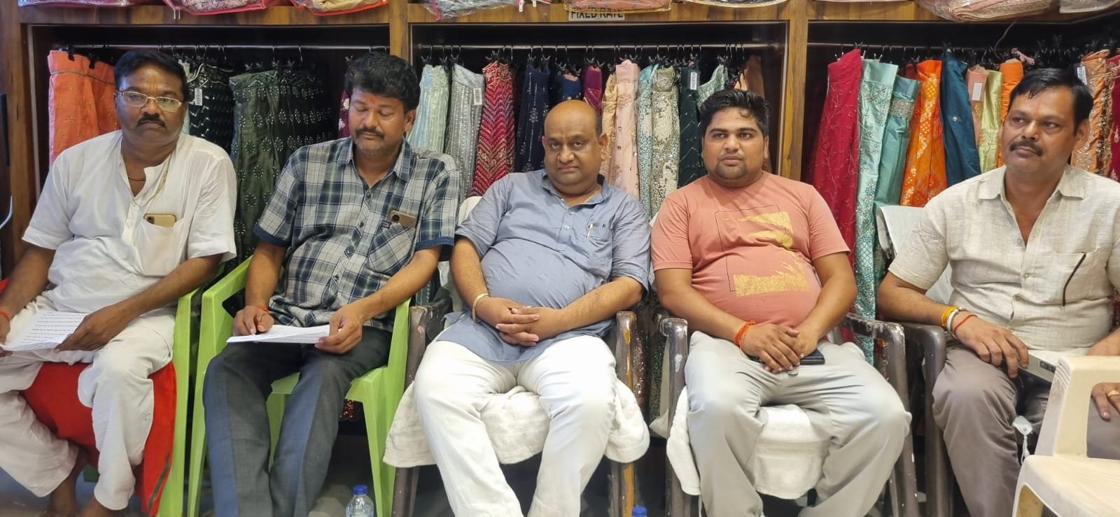 फोटो कोंच2-पत्रकारों से बातचीत करते व्यापार मंडल के लोगअगर चोरी का जल्द खुलासा न हुआ तो अनशन करेगा व्यापार मंडल