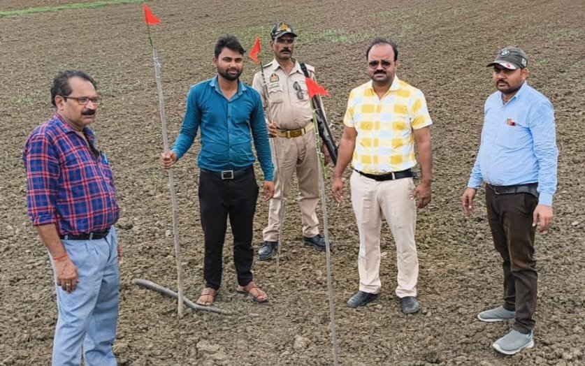 आराजी कुर्क करने की कार्रवाई करते तहसीलदार गौरव कुमार