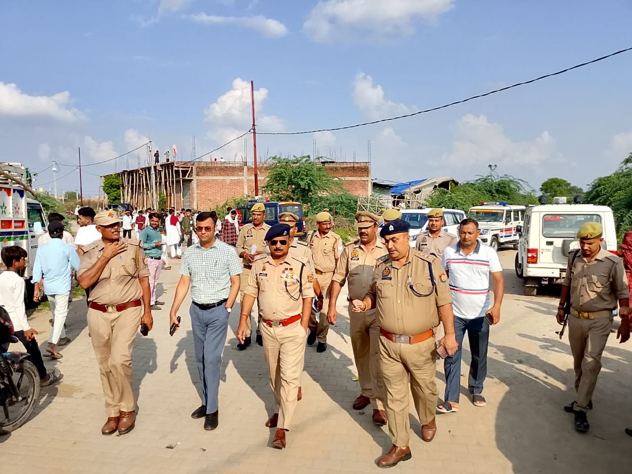 रविवार को एसडीएम अतुल कुमार तथा पुलिस अधिकारियों के साथ पुलिस अधीक्षक डॉ दुर्गेश कुमार ने