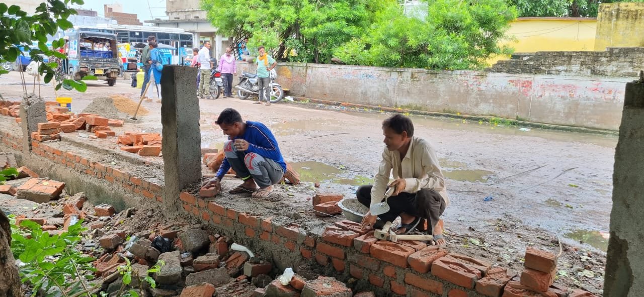 अधिकारियों की डांट के बाद फिर से बनाई बीआरसी की तोड़ी बाउंड्री वाल
