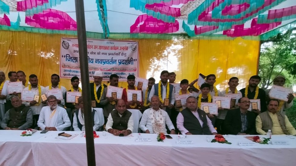 उरई जालौन। जिला विज्ञान क्लब जालौन एवं विज्ञान एवं प्रौद्योगिकी परिषद उत्तर प्रदेश के तत्वावधान में असंगठित क्षेत्र के नवप्रवर्तकों द्वारा जिला स्तरीय नवपवर्तन प्रदर्शनी के आयोजन की अध्यक्षता महेश कुमार पांडेय उपाध्यक्ष लघु सिंचाई किया गया जिसमें जनपद जालौन के असंगठित क्षेत्र के किसान, शिल्पकार,कारीगर,मजदूर मिस्त्री साधारण विद्यार्थी ऐसे जन सामान्य व्यक्ति जिन्होंने कोई प्रोफेशनल डिग्री प्राप्त की हो उन्होंने नवाचार किया मुख्य अतिथि श्री गौरी शंकर वर्मा सदर विधायक उरई ने कहा कि जुगाड़ टेक्नोलॉजी भारतीय परिप्रेक्ष्य में नवप्रवर्तकों का मुख्य सूत्रधार है वैश्विक स्तर पर भारत की पहचान एक ग्रामीण एवं शान्त प्रिय देश की है जो वैज्ञानिक निरंतरता के साथ पारंपरिक ज्ञान व स्वदेशी तकनीकी से बड़ी-बड़ी समस्याओं के हल निकालने में सुविख्यात है आम भाषा में लोग कहते हैं कि भारत में जुगाड़ बहुत प्रचलित है और यह शब्द कई मायनो में रोजमर्रा की जिंदगी का हिस्सा भी है लेकिन कुछ मायने में इस शब्द को बेवजह मानकर नकारात्मक पक्ष में लाकर खड़ा कर दिया है विशिष्ट अतिथि रामराजा निरंजन राम लखन औदीच्य प्रतिनिधि माधौगढ़ विधायक प्रथम पुरस्कार राज सिंह मौर्य कुदारी द्वितीय पुरस्कार सक्षम प्रजापति कालपी तृतीय पुरस्कार राज नारायण सांत्वना पुरस्कार में विक्की गौतम कुसुम देवी साधना सिद्धांत प्रजापति शिव शंकर चतुर्वेदी निर्णायक मंडल डॉ मोहम्मद मुस्तफा कृषि विज्ञान केंद्र अध्यक्ष दो बिस्टर जोशी वरिष्ठ वैज्ञानिक कृषि विज्ञान केंद्र अनिल कुमार गुप्ता जिला समन्वयक इन्स्पायर मानक उरई विनय कुमार गुप्ता जिला समन्वयक जिला विज्ञान क्लब जालौन ने कार्यक्रम का संचालन किया कृषि विज्ञान केन्द्र अध्यक्ष ने सभी का आभार व्यक्त किया।