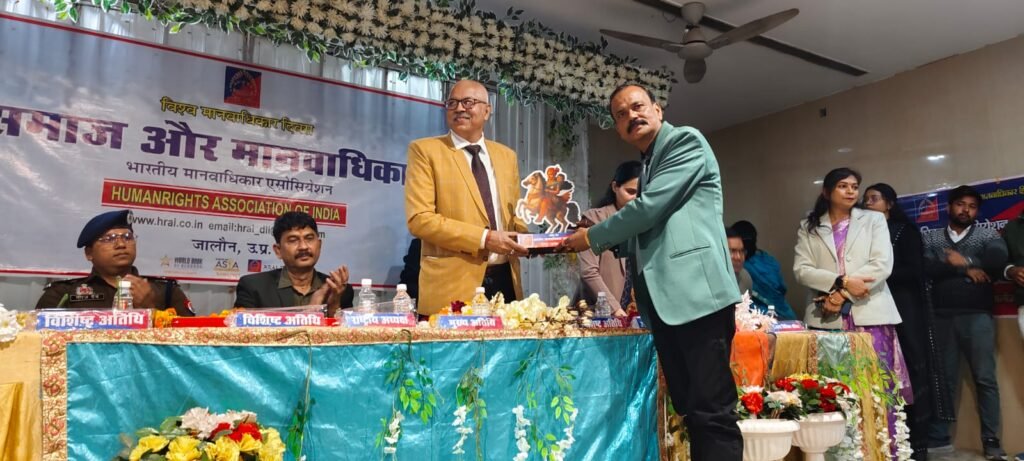 उरई जालौन। विश्व मानवाधिकार दिवस के अवसर पर भारतीय मानवाधिकार एशोसिएशन जनपद इकाई जालौन द्वारा मण्डम गेस्ट हाउस, उरई में भव्य मानवाधिकार जागरूकता संगोष्ठी का आयोजन किया गया। कार्यक्रम में जनपद के वरिष्ठ प्रशासनिक अधिकारियों, न्यायिक अधिकारियों, जिले के प्रतिष्ठित नागरिकों तथा विभिन्न सामाजिक संगठनों के पदाधिकारियों की उपस्थिति ने इसे विशेष महत्त्व प्रदान किया। संगोष्ठी की अध्यक्षता संगठन के राष्ट्रीय अध्यक्ष अनुराग चन्द्रवंशी ने की। कार्यक्रम में सम्मिलित अतिथियों में प्रवीन कुमार पाण्डेय (अपर प्रधान न्यायाधीश, कुटुम्ब न्यायालय), श्रीमती पारुल पँवार (सचिव, जिला विधिक सेवा प्राधिकरण), नीरज देव (जेल अधीक्षक, जिला कारागार उरई) तथा तहसीलदार श्रीनाथ जी उपस्थित रहे।