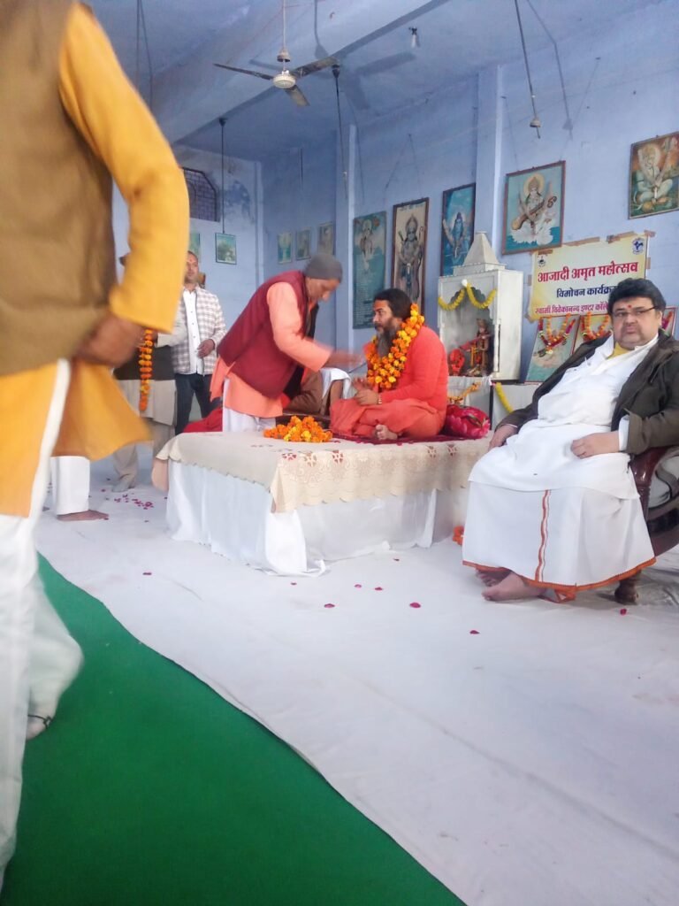 जालौन।परमानंद महाराज की कृपा पात्र ज्योति आनंद महाराज का स्थानीय एक इंटर कालेज मे नमो नमो सनातन हिंदू महासभा के कार्यकर्ताओं स्वागत सत्कार कर उनको सम्मानित किया गया। इससे पहले औरैया रोड से मानस मंदिर रिसोर्ट मे भी उनका स्वागत किया गया।इस दौरान जय श्री राम के जयकारे वहां मौजूद भक्तो द्वारा लगाये गये,उन्होंने स्कूल के बच्चों को अपनी मधुर वाणी से शिक्षा के महत्व को बताया, उन्होने कहा कि लगन के साथ शिक्षा ग्रहण कर अपने माता पिता गुरु जन तथा देश का नाम रोशन करो।भारत की भूमि पर जन्म लेने वाला हर व्यक्ति पवित्र है उसे धर्म संस्कृति और सनातन से जुड़े रहना चाहिए इसी में सबका कल्याण है, नन्हे मुन्ने बच्चों से कहा कभी हिम्मत नहीं हरनी चाहिए अपने लक्ष्य को सुनिश्चित करें। नमो नमो हिंदू महासभा के राष्ट्रीय अध्यक्ष भगवती प्रसाद मिश्रा, विवेक, पियूष महंत, वाचस्पति मिश्रा, मिथलेश कुमार मिश्रा, राहुल यादव, पंकज वर्मा, शिव कुमार मिश्रा, जिला अध्यक्ष सत्यनारायण मिश्रा, डॉ वेद प्रकाश शर्मा, प्रधानाचार्य गुरु प्रसाद शर्मा, माधव कुमार व्यास, श्याम किशोर शर्मा, देवेंद्र कुमार शर्मा, साकेत व्यास, अनुरोध कुमार, आयोजन के बाद वह परमधाम पहुंचे और उन्होंने ठाकुर जी और हनुमान जी के दर्शन किए।