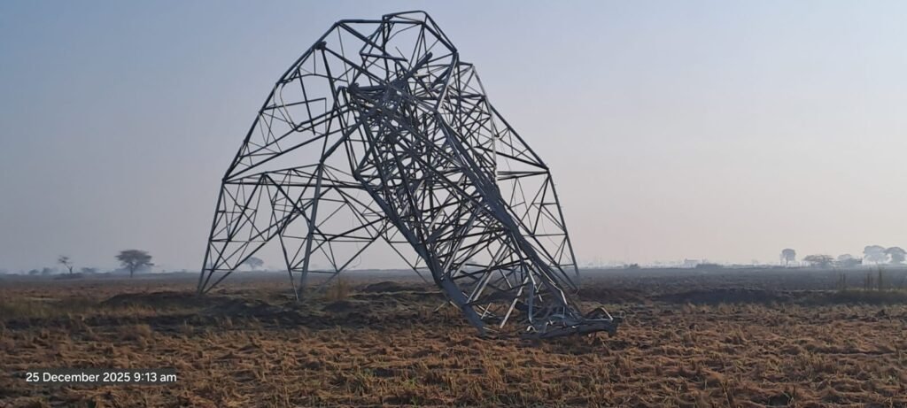 स्पोर्ट में लगे बैक स्टे को क्षति ग्रस्त होनेसे एक टावर टूटा, दो क्षतिग्रस्त