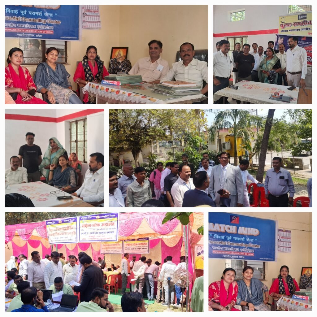 भारतीय मानवधिकार एशोसिएशन जनपद इकाई जालौन के जिला प्रभारी ने अहम भूमिका निभाकर रास्ट्रीय लोक अदालत के अवसर पर दस दंपत्तियों का कराया पुनर्मिलन
